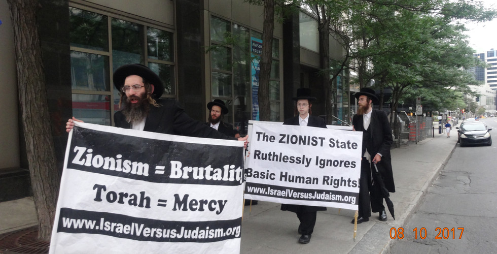 On August 10, 2017, members of the Canadian Orthodox Jewish community protesting in front of Israeli consulate in Montreal, against recent Israeli police violence on religious Jews in Jerusalem