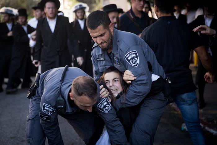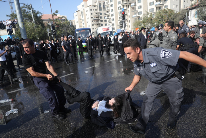 A peaceful demonstration against the forced Israeli draft of religious men and yeshiva students was broken up with seldom-seen police brutality, extreme even for the usually brutal Israeli police – at least when they are interacting with the ultra-Orthodox.