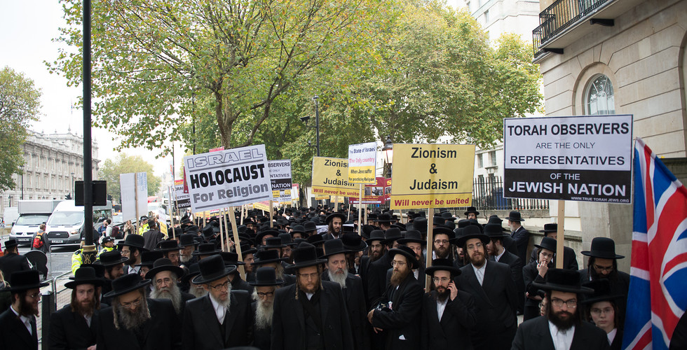 Several hundred rabbinical leaders and their followers from the UK with some of them coming from the United States, Israel and Europe held an anti-Zionist rally today November 2, during Israeli Prime Minister Benjamin Netanyahu’s visit to London to mark the 100th anniversary of the Balfour Declaration.