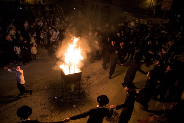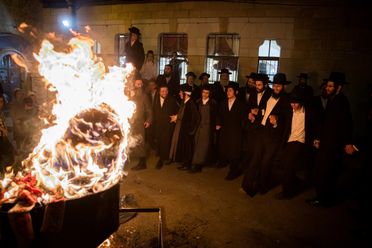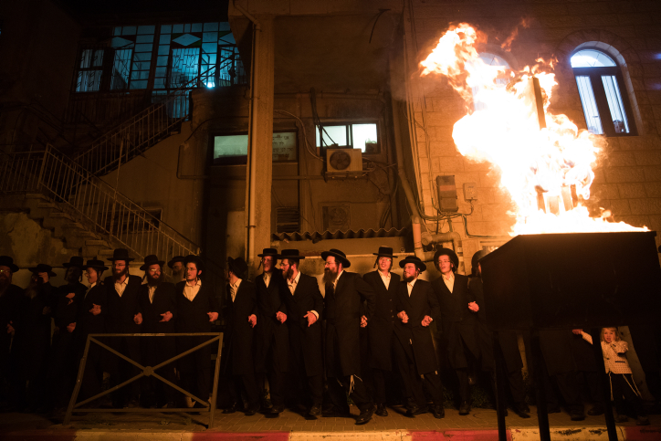 Anti-Zionist Jews burning the Israeli flag during celebrations of the Jewish holiday of Lag BaOmer in ultra-orthodox neighborhood of Mea Shearim in Jerusalem on May 2, 2018. Lag BaOmer commemorates the death of Rabbi Shimon Bar Yochai, one of the most important sages in Jewish history 1800 years ago. A well-known custom of Lag BaOmer is the lighting of bonfires in many Jewish communities worldwide.